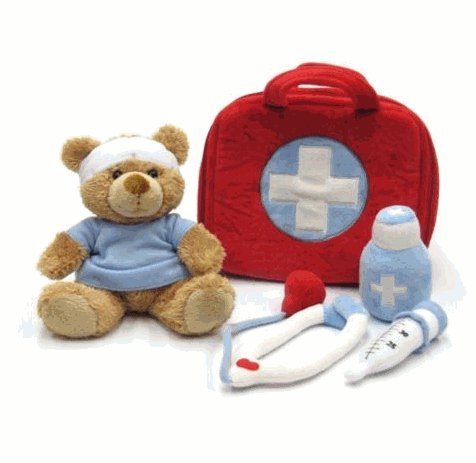 Is there a doctor in the house? Looks like teddy bear needs some extra TLC today. Animal Alley 6 inch Bear Doctor Set is the perfect first doctor's kit for baby. Includes red fabric doctor's bag, soft bottle, stethoscope, thermometer and stuffed bear. Read more...