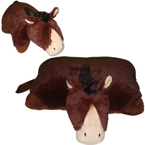 "ANIMALLOW / PLUSH & PLUSH / SLEEPING FRIENDZ" BRAND HORSE PILLOW PET, 18" LARGE. They are plush folding stuffed animal and pillow all in one. They are made of high quality, super soft chenille. Close the strap across their bellies and you have friendly comforting pets. Open then strap and the pet becomes a comfortable pillow. Even more, those plush folding stuffed animals are soft like a real fur coat. Read more...